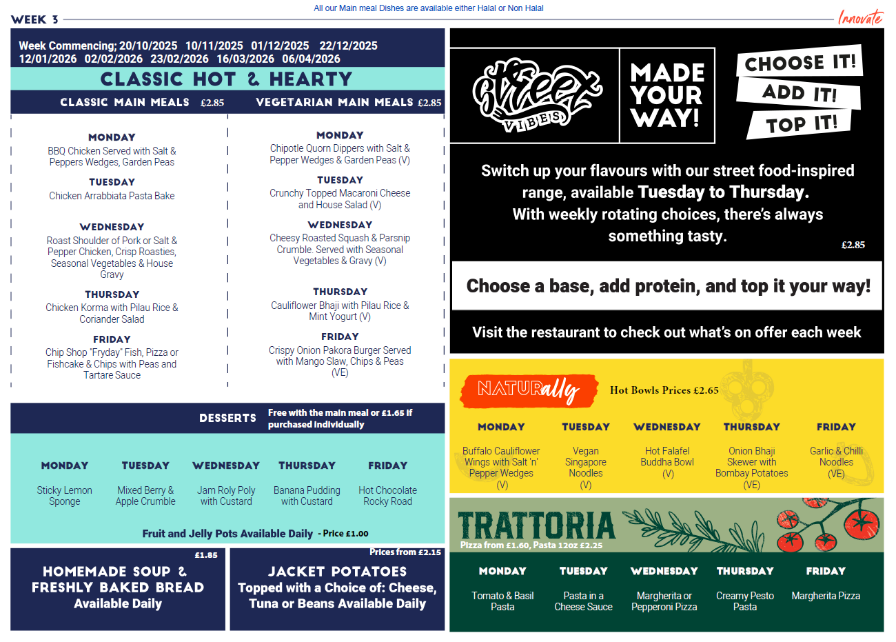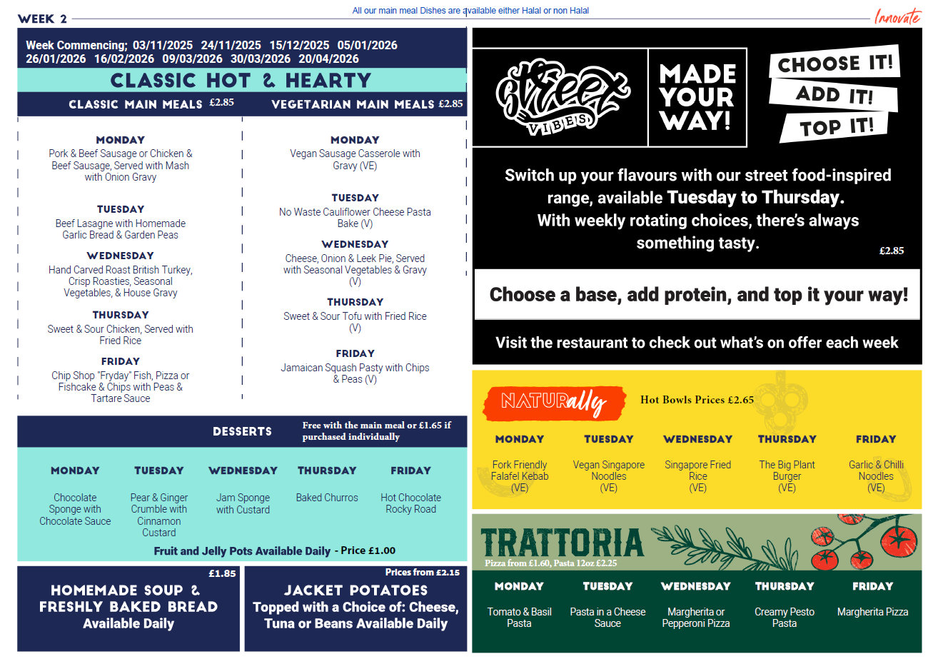 St Andrew the Apostle School works with Innovate IFG to provide hot and cold food for students at breakfast, morning break and lunch time. Menus are updated termly, and rotate to ensure that students have a range of options available to them. The catering team also offer seasonal menus.