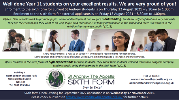 Mrs Indira Warwick, Headteacher said, “Our staff have worked closely with students and their families to support Year 11 through what has been a very challenging time in education. Our staff really believe in our students and their resolve to help each and every student achieve their ambition has enabled our Year 11 students to truly flourish. Most of our students have met and exceeded their target grades. I am proud to say that St Andrew the Apostle School is a wonderful community-led school, where hard-working and aspirational students can succeed and where every child is known."